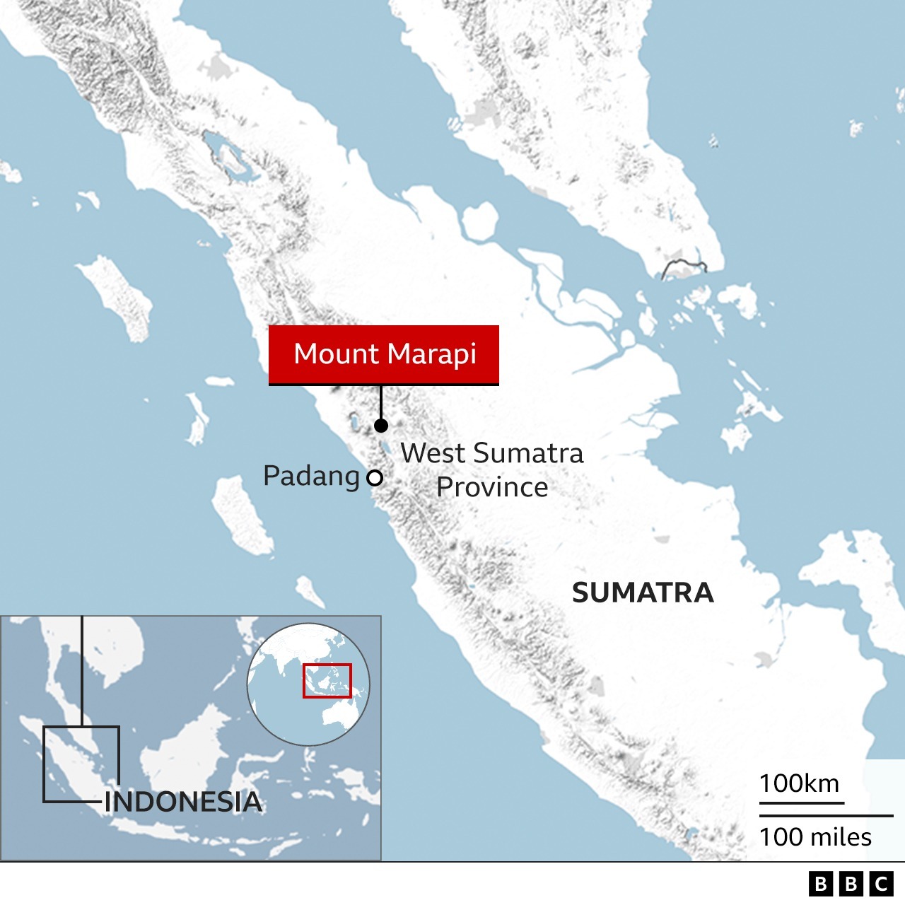 इंडोनेशिया के पश्चिम सुमात्रा प्रांत में माउंट मारापी फटा, जिससे ऊपर से 3,000 मीटर (लगभग 9,800 फीट) तक सफेद और धूसर राख की धुंध निकली।