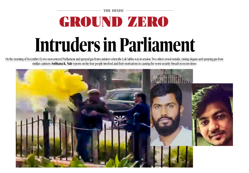 On the morning of December 13, two men (Manoranjan & and Sagar Sharma) entered Parliament and sprayed gas from canisters when the Lok Sabha was in session. Two others stood outside, raising slogans and spraying gas from similar canisters. Sobhana K. Nair reports on the four people involved and their motivations for causing the worst security breach in recent times.