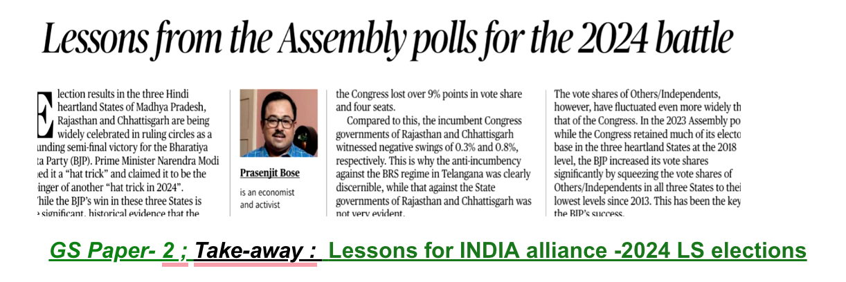 • Second, the Congress and other Opposition parties in the INDIA formation should finalize their seat sharing arrangements without further delay and formulate a common programme.