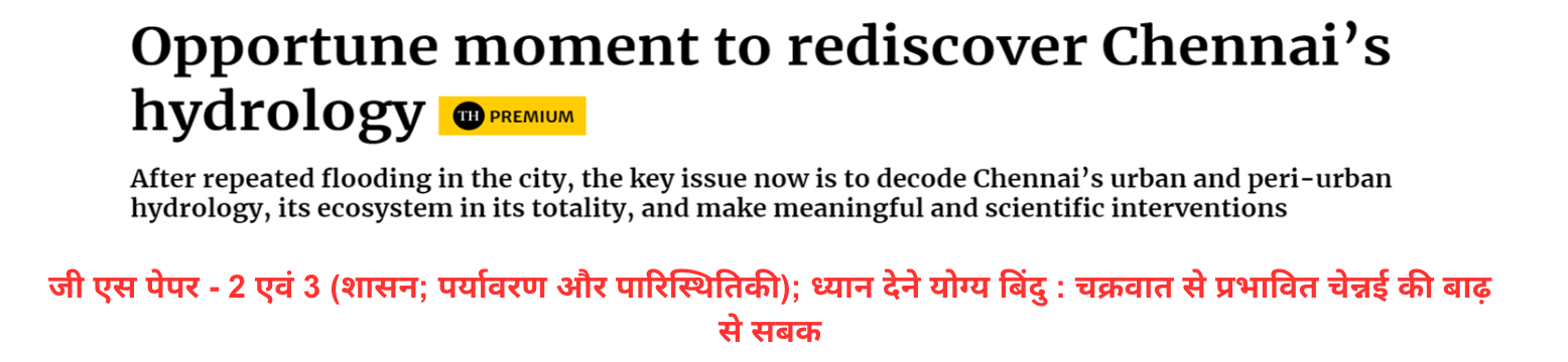 चेन्नई तटीय बाढ़ और जलवायु परिवर्तन की चुनौती का सामना कर रहा है, और इसके जल विज्ञान और पारिस्थितिकी तंत्र को समझना और बाढ़ शमन, सूखे से निपटने और चेन्नई और महानगरीय क्षेत्र के लिए जलवायु-अनुकूल रणनीतियों के निर्माण की दिशा में वैज्ञानिक हस्तक्षेप करना महत्वपूर्ण है।