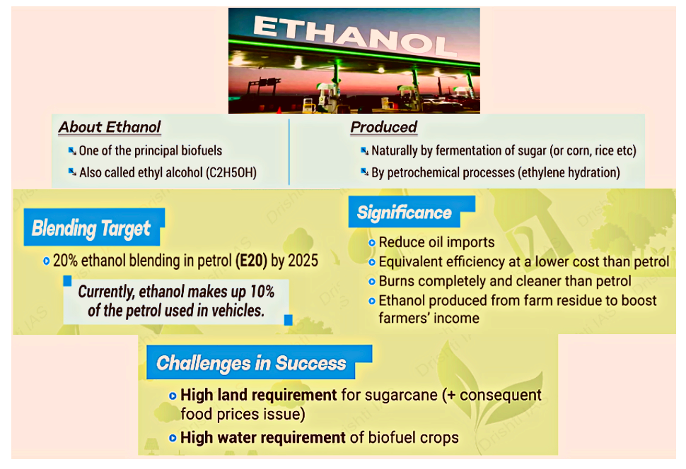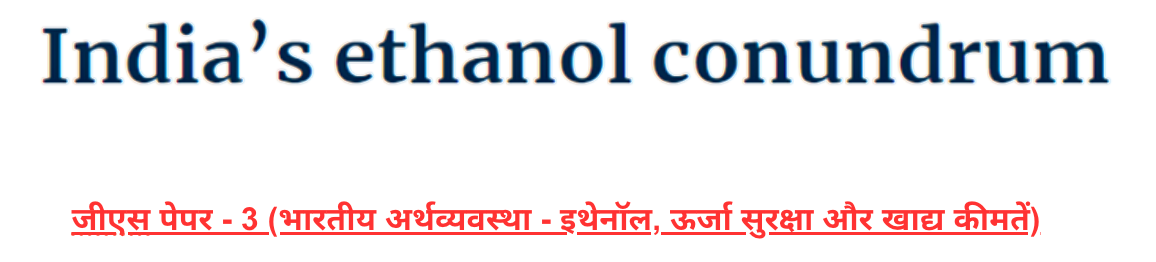 निष्कर्ष: हालाँकि भारत का नवीकरणीय ऊर्जा और इथेनॉल सम्मिश्रण लक्ष्य सराहनीय हैं, लेकिन खाद्य आपूर्ति और मुद्रास्फीति पर संभावित प्रभावों पर विचार करना आवश्यक है। टिकाऊ भविष्य के लिए इन कारकों के बीच संतुलन बनाना महत्वपूर्ण है।