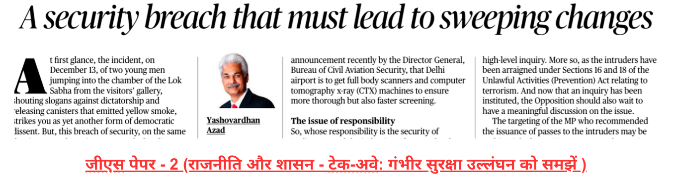 जिम्मेदारी का मुद्दा-संसद की सुरक्षा और नई तकनीक को शामिल करना किसकी जिम्मेदारी है ?