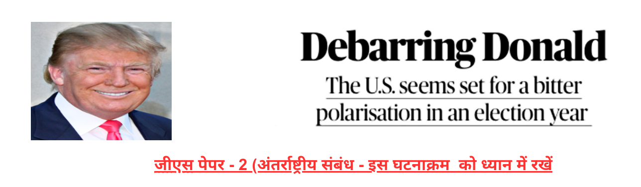 अमेरिकी राज्य कोलोराडो के सुप्रीम कोर्ट ने पूर्व राष्ट्रपति डोनाल्ड ट्रम्प को 2024 के राष्ट्रपति चुनाव में भाग लेने से रोक दिया है, इस आधार पर कि उन्होंने "विद्रोह" (2021) में शामिल होने से संबंधित संवैधानिक खंड का उल्लंघन किया है।