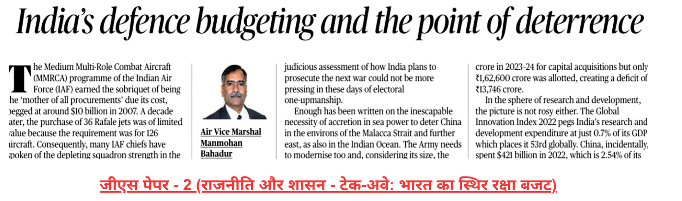स्वदेशी अभियान, R & D - सशस्त्र बलों को तकनीकी रूप से आधुनिक होना चाहिए। हालाँकि, स्थानीय रक्षा उद्योग को विकसित करने में दशकों लग जाते हैं, जिससे आवश्यक क्षमता सुनिश्चित करने के लिए आयात और स्वदेशी अभिवृद्धि के बीच एक स्मार्ट संतुलन बनाए रखना आवश्यक हो जाता है।
