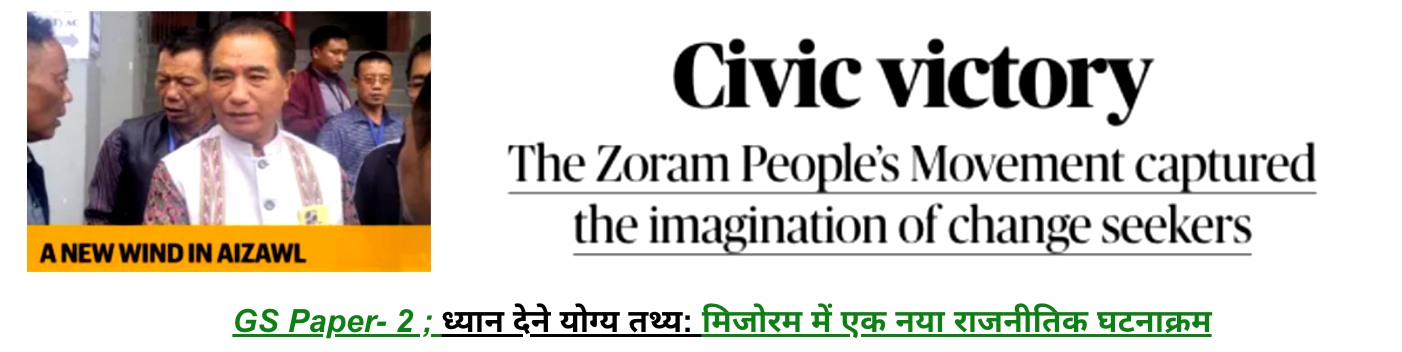एम एन एफ और कांग्रेस के बीच सत्ता स्थानांतरण का 36 साल पुराना एकाधिकार समाप्त हो गया। (ZPM का गठन 2017 में 6 छोटे क्षेत्रीय दलों के गठबंधन द्वारा एक गैर-कांग्रेस और गैर-एम एन एफ राजनीतिक विकल्प के रूप में किया गया था।)