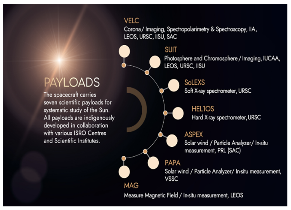 आदित्य-एल1 एक वेधशाला श्रेणी का सौर मिशन है जो सात उपकरणों के साथ सूर्य का अध्ययन करेगा।