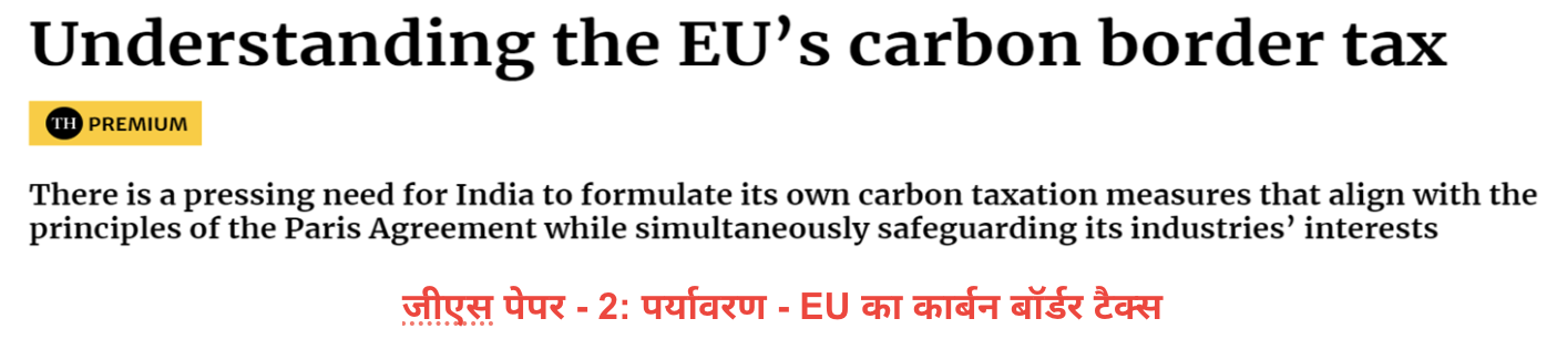 निष्कर्ष: हाल ही में, यूके ने 2027 तक अपने स्वयं के CBAM को लागू करने की घोषणा की। इससे आने वाले वर्षों में भारत के निर्यात के लिए एक महत्वपूर्ण उथल-पुथल होने की उम्मीद है। परिणामस्वरूप, भारत को अपने स्वयं के कार्बन कराधान उपायों को तैयार करने की तत्काल आवश्यकता उत्पन्न होती है जो पेरिस समझौते के सिद्धांतों के साथ संरेखित हों और साथ ही साथ अपने उद्योगों के हितों की रक्षा भी करें। हालाँकि, उपलब्ध सीमित समय को देखते हुए, भारत के लिए इस संबंध में तेजी से कार्य करना अनिवार्य है।